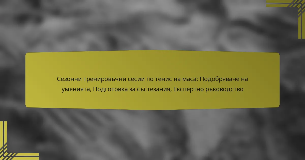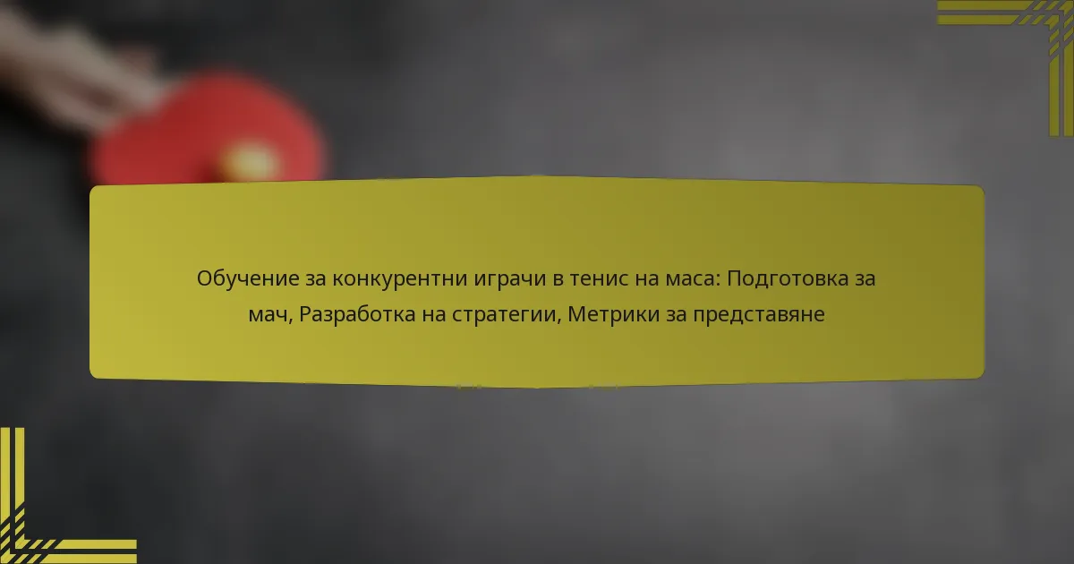 Тренировките за състезателни играчи на тенис на маса включват цялостен подход, който обхваща подготовка за мачове, разработване на стратегии и метрики за представяне. Ефективната подготовка комбинира физически загрявки, умствени стратегии и анализ на противниците, за да оптимизира готовността за състезание. Като разбират собствените си силни и слаби страни, играчите могат да разработят персонализирани стратегии, докато проследяването на ключови метрики за представяне помага за усъвършенстване на играта и информира бъдещото обучение.